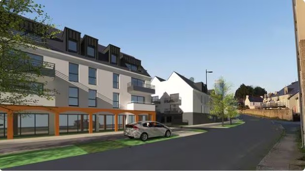 Cette société propose la construction d’une centaine de logements (appartements et maisons, avec au minimum 20 % de logement sociaux), et la construction d’un minimum de 300 m² de cellules commerciales et tertiaires, modulable en perdureront.
